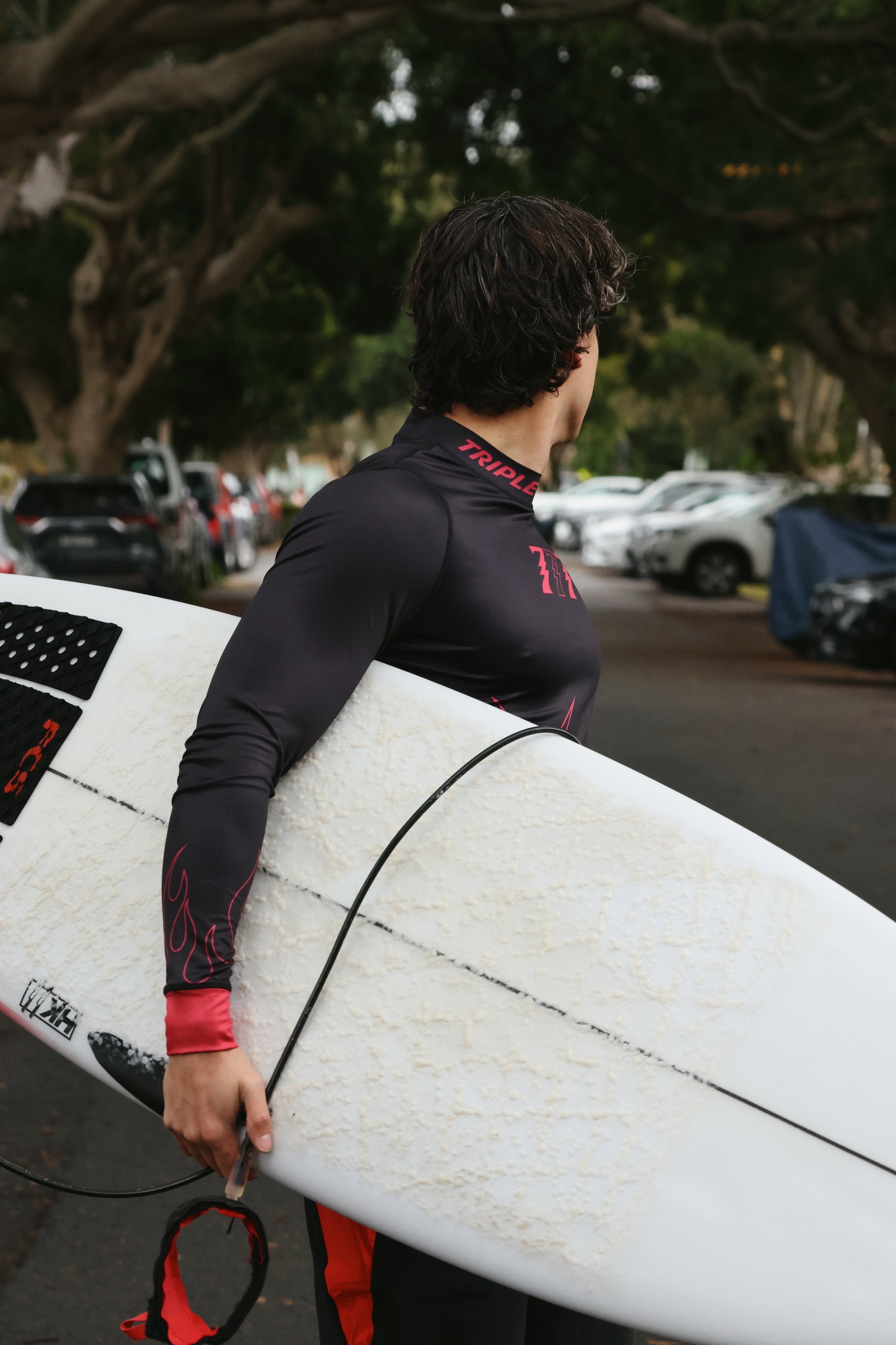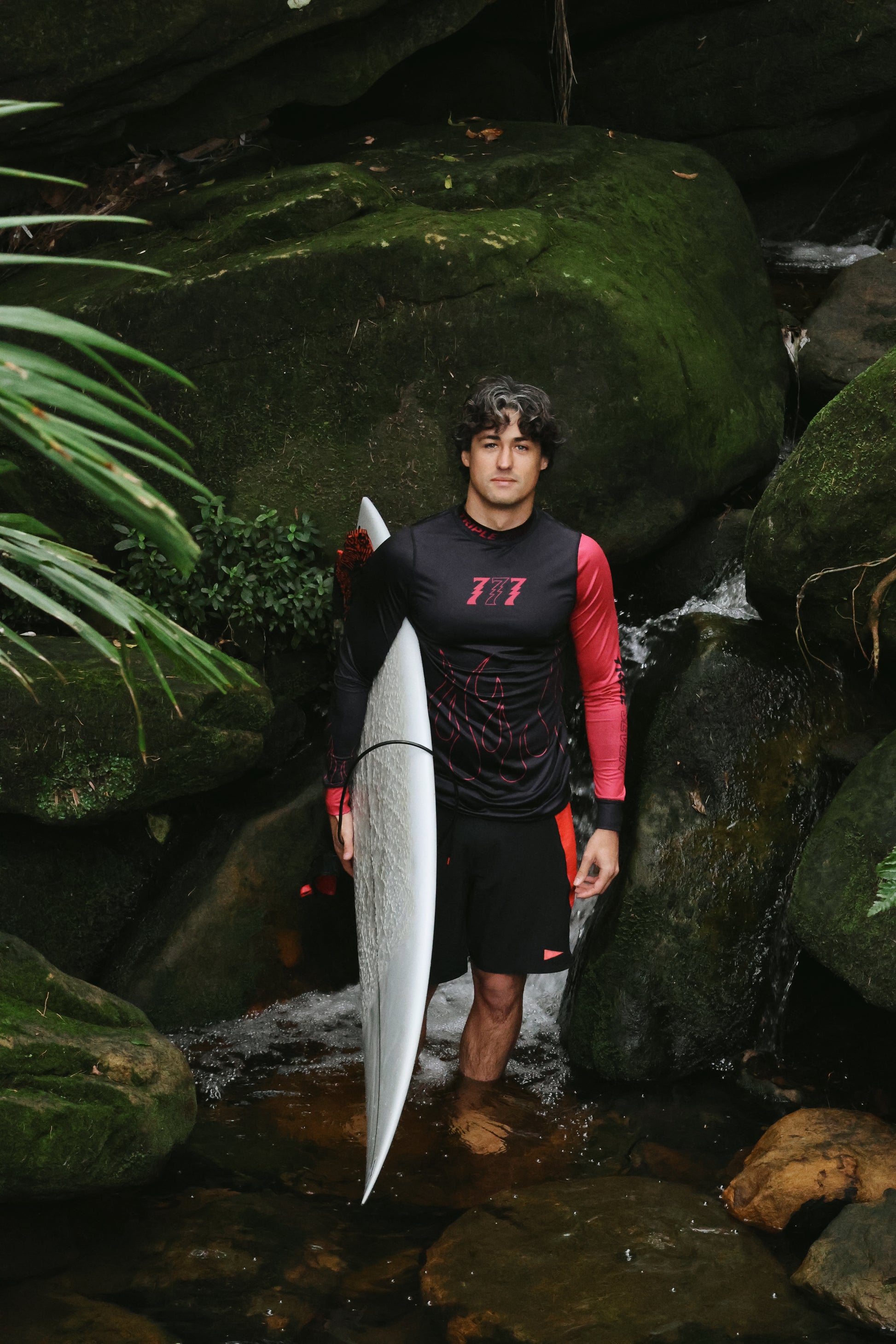 Hell is on fire is our prototype performance rash vest, inspired by the hectic graphics from surfing and motocross in the late 90's early 00's, when Guy Fieri was rocking button ups with flames and everything just looked cooler.